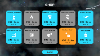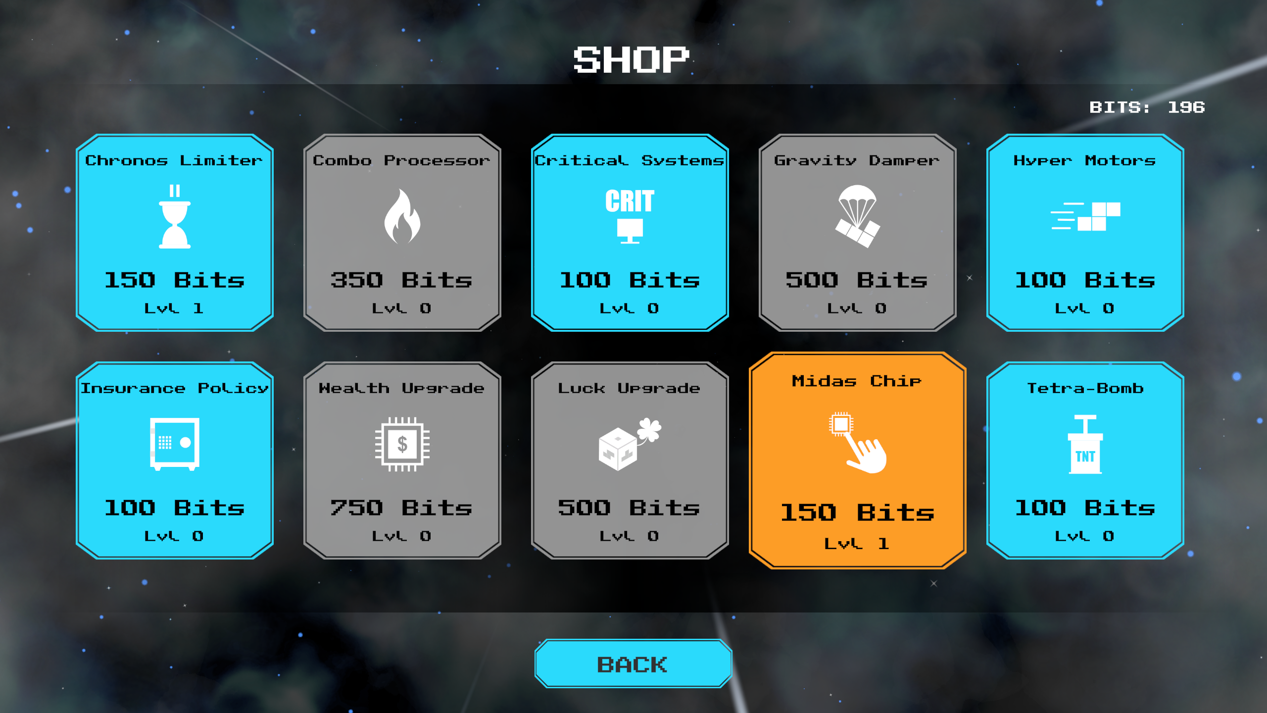 🛒 Shop & Roguelite: Earn Bits by playing and spend them in the shop. Buy permanent upgrades like Luck Upgrade, Gravity Damper, and Wealth Algorithm to improve your odds.